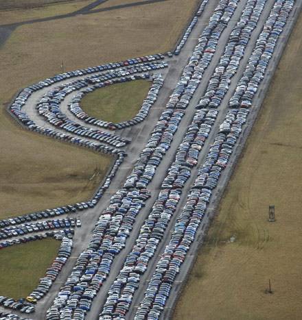 nepredanych aut su skladovane na testovacej trati tovarne.
