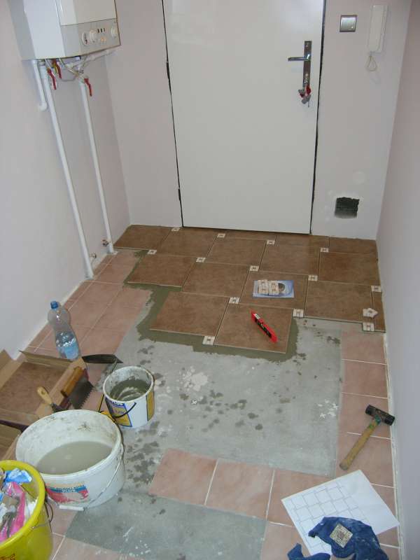 Netýká se to sice garáže, ale když tady někdo hodil svou první pokládku, dělali jsem 3roky zpátky kousek dlažby v chodbě, tak přikládám foto. Taky moje první pokládka