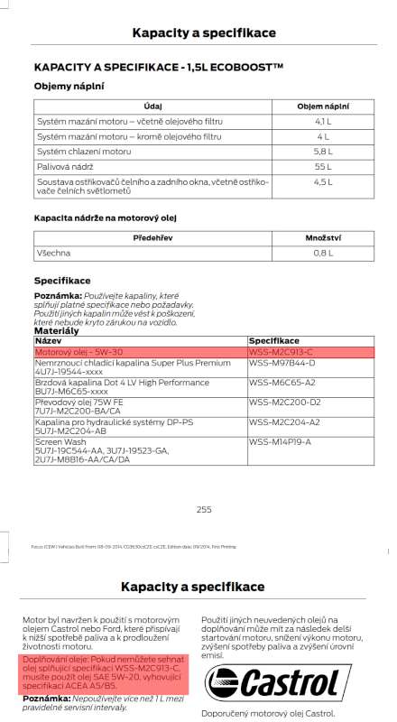 V uživatelské příručce, která byla platná do 15/02/2015 byl uváděný olej pro 1,5 EB - 5W30 a v novější od 16/02/2015 už je jen 5W20: