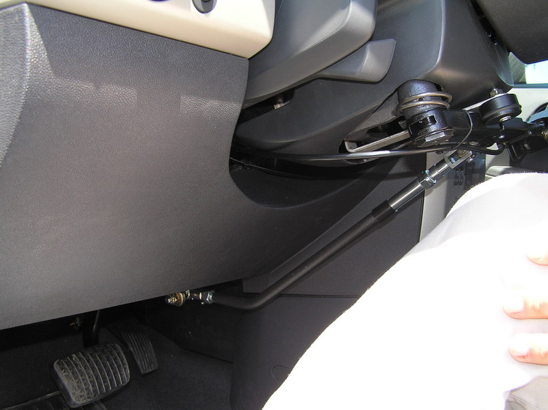 moj svokor ma dalsie riadenie, to ma plyn na lavej strane ako dalsiu paku. Takze napravo ma paku, ktora brzdi potlacenim dopredu, nalavo ma pod volantom taku mensiu paku, ktora prdiava plyn potlacenim dole a na rychlostnej pake ma tlacitko, ktore po stlaceni vytlaci spojku.
