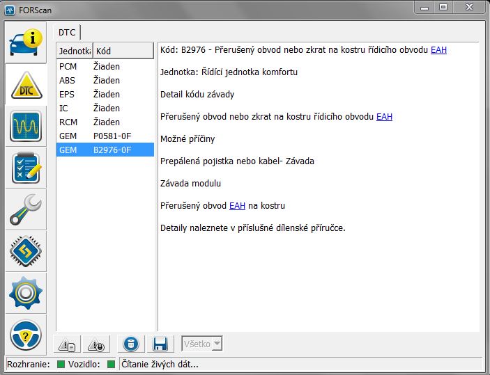 Forscan mi vypisal toto: A ked som dal monitoring GEM tak aj ked bolo na C103-14 12V tak GEM nezaznamenal poziadavku na zapnutie PTC