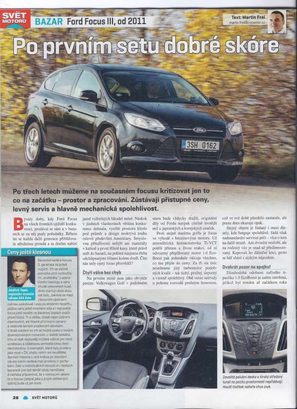 Precital som si tie skeny. Dorazil ma ale komentar k 1.6TDCI s udajnymi 63k km. Ked si spomeniem na mojho benzinoveho Focusa, kde som musel repasovat komplet prednu napravu uz po 120 tisic km - oba tlmice (pravy vyteceny, lavy este OK), komplet horne ulozenie tlmicov, tycky stabilizatora, tycky riadenia a zvisle capy, co bola dan za 90 tisic km vyhradne po Bratislave a blizkom okoli, nieco som mu dal aj ja geocacherskym rallycrosom v style co neprejdem to preskocim, hmmm, ale 60k km je kua malo na vymenu zvislaku. Mam z toho zmiesane pocity. K tomu este vstrek uchadzajuci na vyrovnavacich davkach, hmmm, hmmm. Pri 160k by som sa tomu necudoval, bolo by to vpodstate v norme, no po 60k km je to na plac. Tento problem moze byt sposobeny aj hrozivejsou vecou - chytene kruzky 3. valca, alebo ohnuta ojnica. Na druhu stranu, nech je DV6 akykolvek srot, o jeho ohnutej ojnici som este nepocul. To skor vyleti z bloku po pretoceni salky v dosledku nedostatocneho mazania...