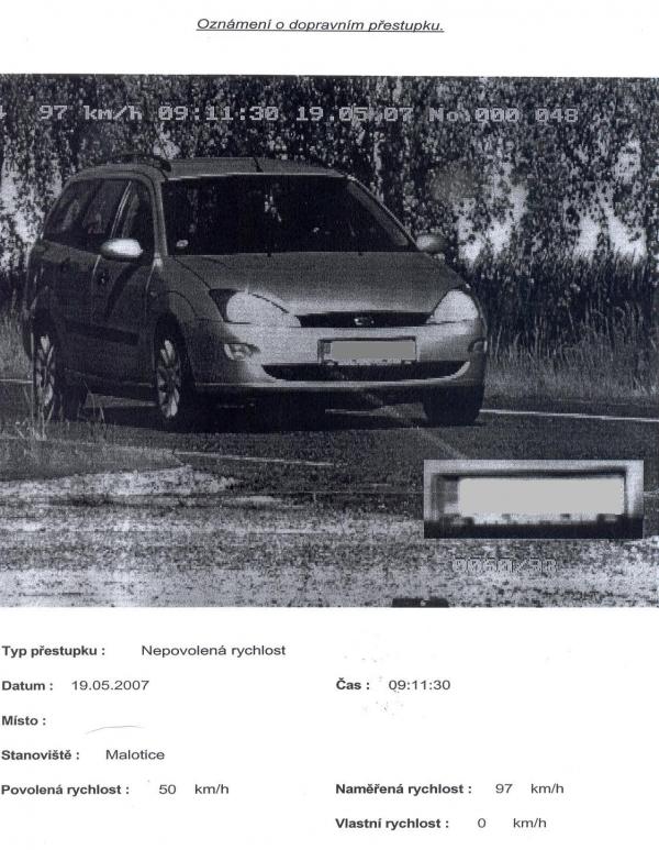 Jsem proti Vám úplný břídil. Alespoň proti většině. Dostal jsem max. 1000Kč. Myslím ale že s velkým štěstím. Bylo to v červnu. Chytili mě ještě s Escortem. Jel jsem na padesátce rychleji, ale neměřili. Stejně mě zastavili. Bylo v tom prasklý sklo, sjeté přední gumy a jízda s propadlou technickou a emisí.