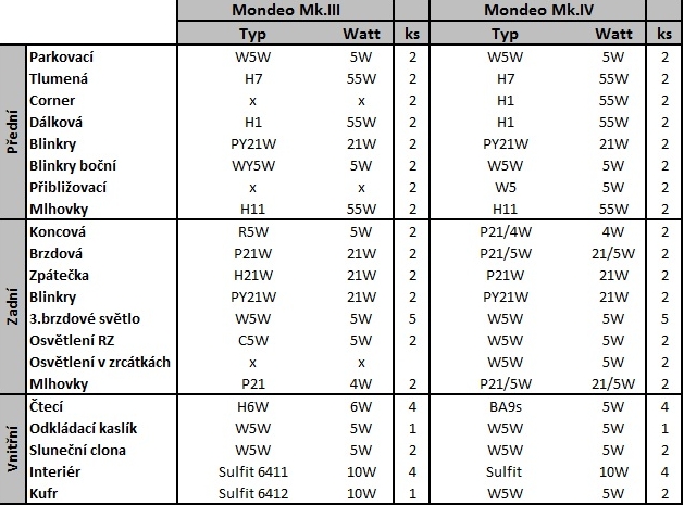 Dovolil jsem si udělat seznam žárovek na MkIII a MkIV (z dostupných ofiko materiálů - kdyžtak to čekněte, jestli je to OK) do excelu. Prosím někoho (třeba frantíku), jestli by nemohl doplnit do excelu (pošlu mailem) LEDky s kat.číslem a že bysme to dali někam do záhlaví jako stálou pomůcku, co vy na to?