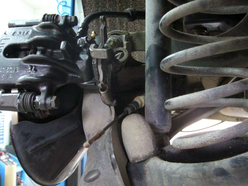 Auto zvedneme, odbrzdíme!!! a sundáme kola Rozpojení lanovodu ruční brzdy Odpojení brzdové hadičky a čidla ABS edit foki : rozpojeni lana rucni brzdy - v nejhorsím pripade preríznout