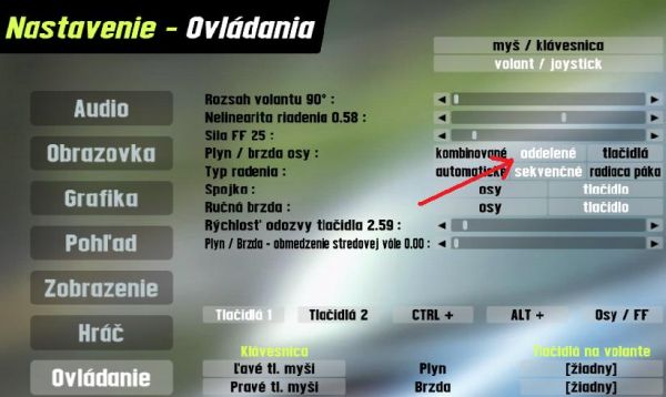 Ovladanie <> Plyn / brzda osy <> treba nastavit na oddelene