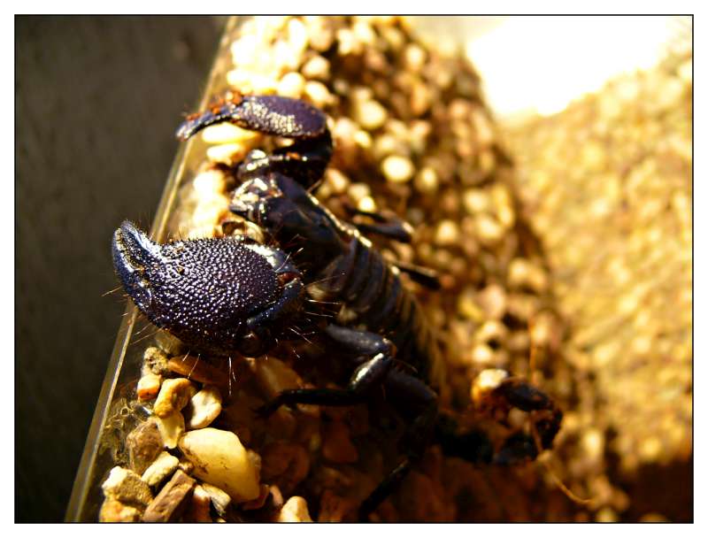 Damon jelikož mám 2 tak si vyndavám jen jednoho a nechám ho běhat po pokoji pod dohledem jsou to rychlící :twisted: a co se týče kousnutí..používají ty klepeta,kterými loví a pak mají ještě menší kusadla.. mají neskutečnou sílu stisku :o a ten bodec mají spíše na okrasu jen málokdy ho použijí a výsledek je jako bodnutí od včely :idea: