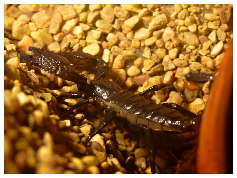 jedovatý štír je třeba Leiurus quinquestriatus pořád drží 1 místo v nej.jedovatosti.. většinou mají malé klepeta,ale onen dosti jedovatý bodec :twisted: někdy je větší než tělo samotné,proto ten můj má takové klepeta a bodec malinký 8)