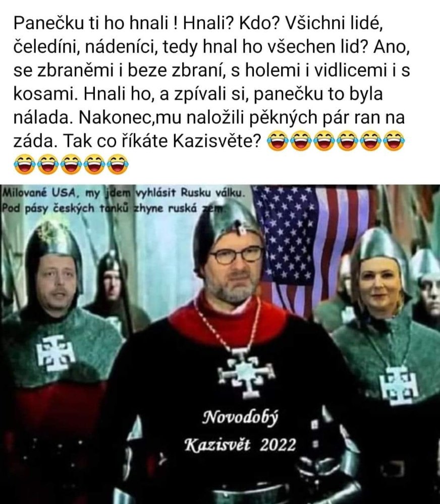 Sentik: vtip nema davat smysl, ale je preci jen pro zasmani a udelanej od priznivcu ci odpurcu, satira byla na kazdou vladu, bohuzel dneska by za SODU z 90tek byl kriminal a tohle je vetsi problem jak tenhle vtipek. Nechapu co je na nem rusofilniho?