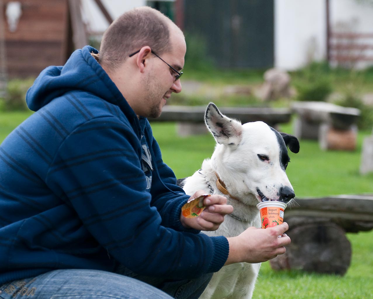 už jsem tady našeho Bruňáka dával na fotce, ale jednou jsem ho vlastně natočil i na videjko, zrovna měl "drbací" náladu. Je to mazel: