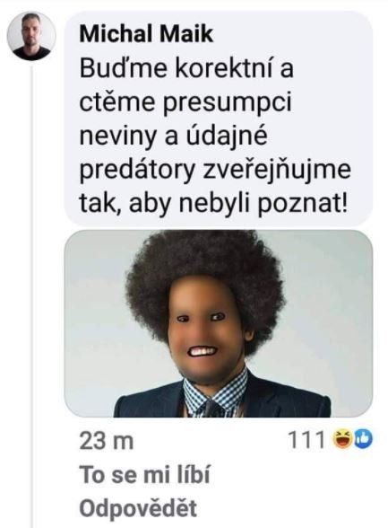 K Ferimu, Karel ma pravdu a ostatni si jen honi triko, ted jsem slysel rozhovor s nejakou obhajkyni a veta" kdyz zena rekne jednou, ze nechce, tak ikdyz potom svoli, je to znasilneni" :bebng: takze 90% milovani v manzelstvi je znasilneni( boli me hlava a podobne). Mozna misto tehle vyznavacu MeToo by mohli udelat osvetu, ze se musi jednoznacne rici ne a pokud k tomu dojde, nedobrovolne, tak oznamit hned a ne po 10 letech si vzpomenout. :nixw: