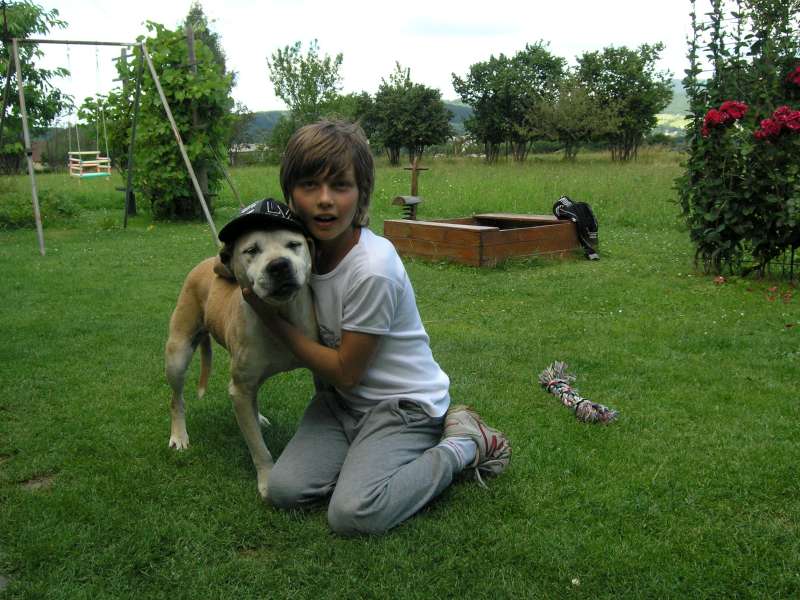 Kočky taky papají, až se za ušima oblizují. Beránci, kačenky, slepice, všichni se mají jako v hotelu. Tady ještě přidávám fotku předešlého psa. Taky jako markkepi, staford. Dožila se krásného věku, 14 let. Bára
