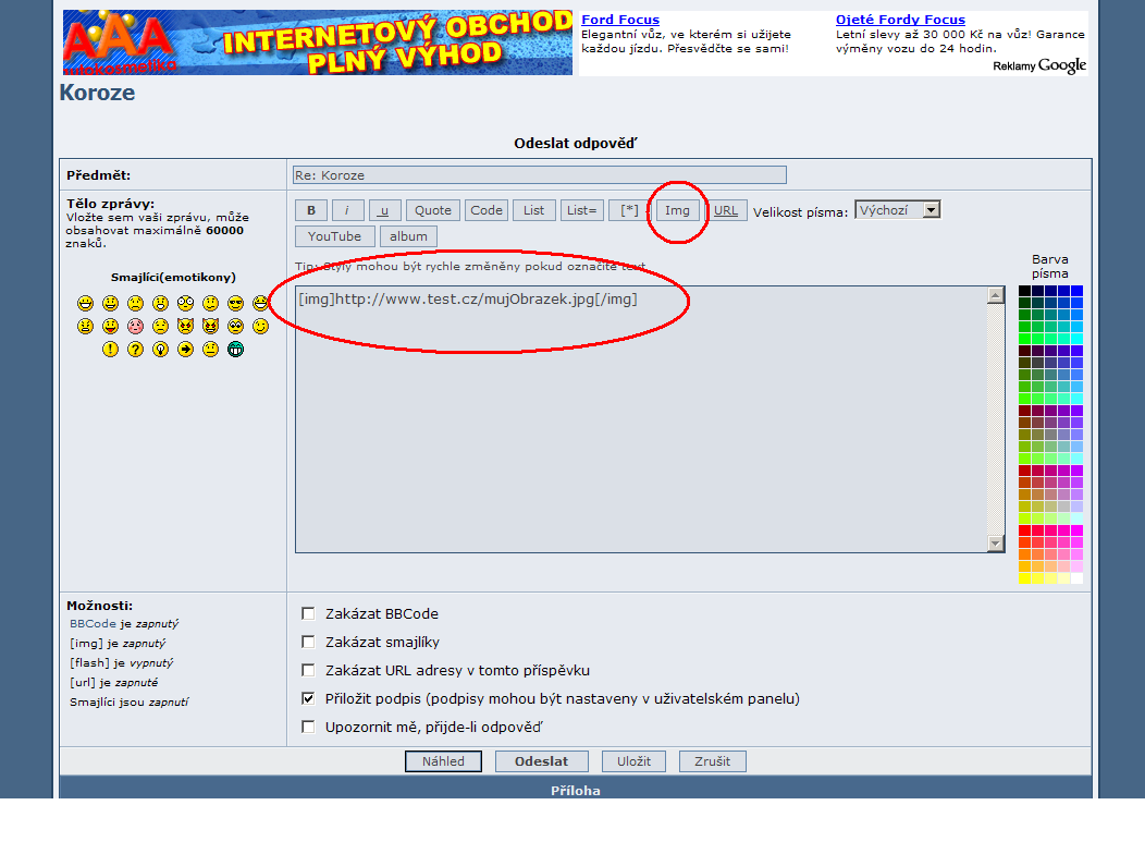 Jak na forum - vlozeni obrazku (odjinud) do prispevku