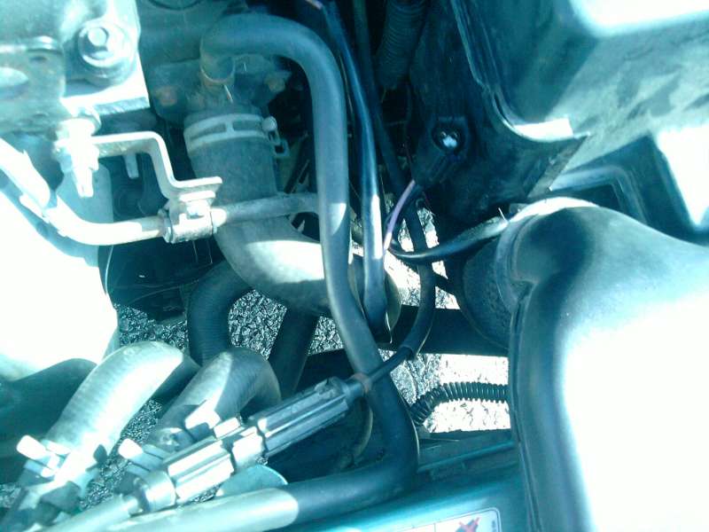 Vedou k němu dva silnější kabely, ve svazku mizí asi směrem někam k ventilátorům na chladiči, tak mi připadá jako termospínač těch ventilátorů. Ale proč je takhle ve "vzduchu"? Ale na první pohled se mi nezdá, že by někde chybělo našroubovaný, tedy v rámci dosahu přívodního kabelu.