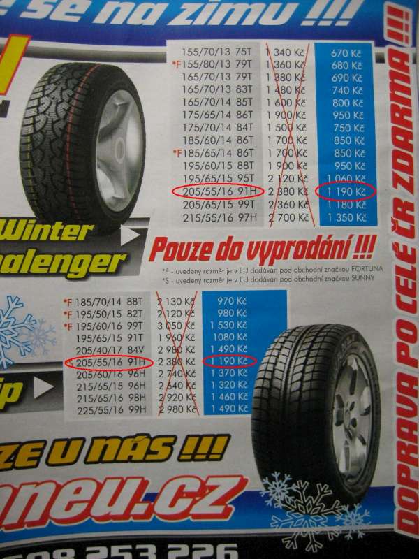 Já jsem měl vcelku štěstí, koupil jsem starší disky originál 16" z Mondea po 700,-Kč za kus a pneu Continental TS790 2x7mm (2x 1500,-Kč) a 2x6mm (2x1200,-Kč). Jako bonus origo poklice za 500,-. Už to mám na autě a super, nemá to chybu.rumcajs1 píše:máš už vybranou nějakou značku a dezén? Taky musím nějaký pneu koupit, ale nechce se mi moc investovat ... zase bych se ale nerad někam nechtěně sklouznul