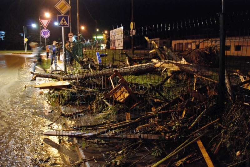 Vcera v noci pri vydatnem desti se rychle zvedly hladiny potoku. V NJ klady protrhly plynove potrubi, unikal plyn pod velkym tlakem do ovzdusi. Dcera utekla z bytu v okoli a spali tuto noc u nas. Rano jsme jel na Kacabaju a po ceste auta nametena namustky nebo na stromy v okolnich zahradach. Bylo mi to trapne rano fotit, kdyz obyvatele ohlizeli skody.