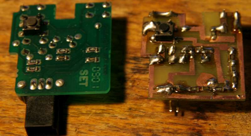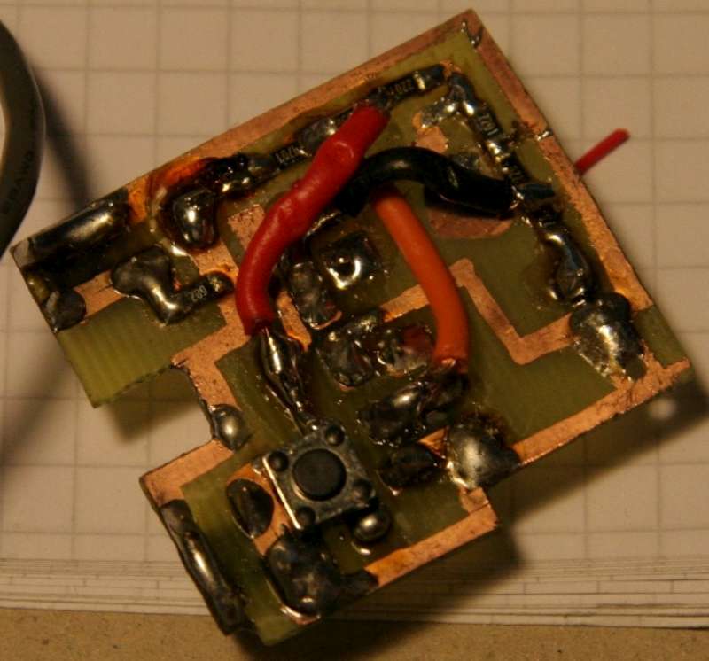- 2x špatně spojený odpor s tlačítkem - přerušen spoj a správně zapojeno pomocí drátové propojky