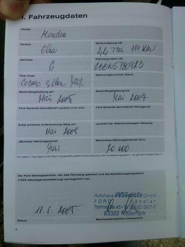 Auto vyzeralo slusne a malo aj servisnu knizku, dovezene bolo z Nemecka. Tak som si ho chcel preverit, odfotil som si servisnu knizku a stitok s VIN - prikladam. Doma som nasledne vyhladal danu predajnu, ktora auto predala a hned som zistil jednu nezrovnalost. Na razitku v serviske chyba jedno pismeno v nazve mesta, namiesto Rodermark uvedene Rodemark (a takisto som nenasiel ani tel cisla uvedene na razitkach oboch firiem).