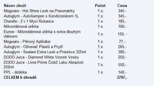 Suma sumarum investice 3.000,-Kč nelituju, davkovani je minimalni a verim ze se mi ta investice casem vrati. Jeste si zakoupim clay + tvrdy vosk asi taky od AutoGlymu a budu zcela spokojen