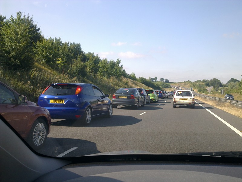 Vyrazil jsem ráno před 8 hodinou. A už hned na dálnici za Londýnem to začalo...Fiesta ST, Focus RS, novej Focus RS, ST, Escort RS Coswort, další Focus RS atd... Pak na mě mávali týpci z kolony Fiest a Escortů, tak jsem se k nim přidal a jel až na Silverstone.