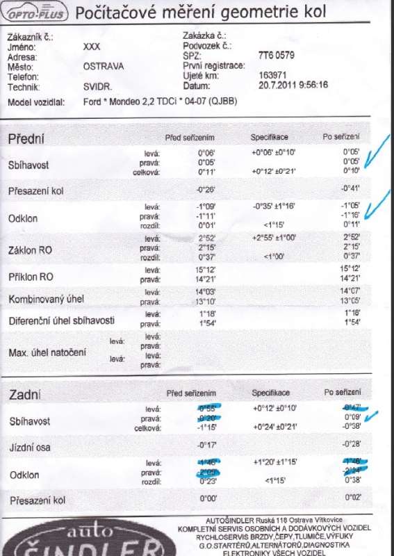 Měl jsem dříve 5 let Escorta a teď před 14 dny jsem koupil toto Mondeo, snažím se to dát dohromady a jediný problém je se zadnímy koly. Myslím, že péra nemají vliv na to, že nejde udělt sbíhavost tak , aby byla v toleranci asi nemají.