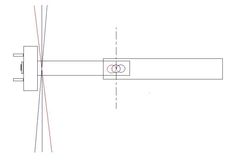 Teď na to koukám znovu, fakt nevím, kde je chyba, ale připadá mi to, že v Etzoldovi...? Píšou tam o excentru na seřízení sbíhavosti, ale podle umístění mi to spíš připadá právě na ten odklon, Veny. Protože pokud s ním budu otáčet, tak to vlečné rameno s nábojem kola bude pořád ve stejné sbíhavosti drženo předním spodním příčným ramenem. Bude se ale měnit odklon, protože tím excentrem budu od sebe oddalovat a přibližovat zadní spodní příčná ramena. Tudíž z toho mi vyplynulo, že sbíhavost se může pokazit pouze při vymačkání silentbloků (nebo ohnutím některých prvků nápravy) a není nutné ji ve standardu měnit, kdežto odklon se dá seřídit. Zkusil jsem nakreslit takovou skicu, jak to chápu já. Je to v podstatě pohled na náboj s zadním spodním příčným ramenem a nápravnici zezadu. Pokud excentr vychýlí rameno tak, aby se překrývala červená díra s černou, bude platit červená díra pro oklon, modrá pro modrou. Záměrně je to pro představivost nakresleno i s negovaným odklonem, který pravděpodobně nelze u této nápravy docílit, naposledy jsem to viděl na Spartaku. Kdybych mystifikoval, tak mě opravte. Jinak toto je ale pro kombi, sedan a hb to mají tuším jinak, ne? Tam myslím nejsou vlečná ramena, nebo se mýlím?