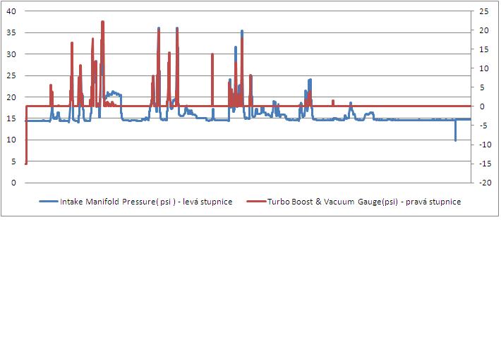 K Tvojim otazkam - plniaci tlak (turbo pressure boost) je cisty plniaci tlak - teda tlak v sani minus atmosfericky tlak. Ma byt v rozsahu 0 az 1.5 baru. Tlak v sani (manifold pressure) ma byt 1 - 2.5 baru. Tieto hodnoty platia pri overbooste. Bez neho je to o 0.2 baru menej.