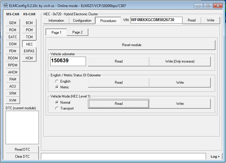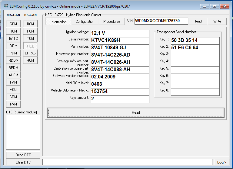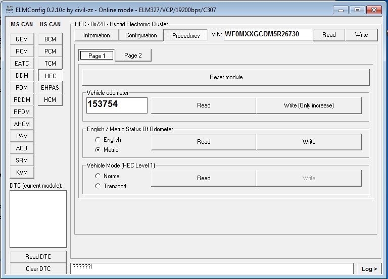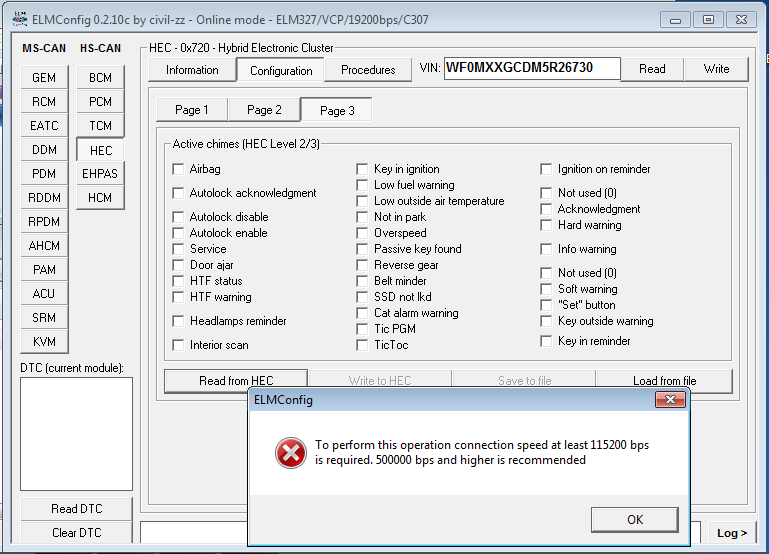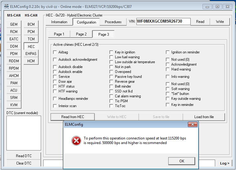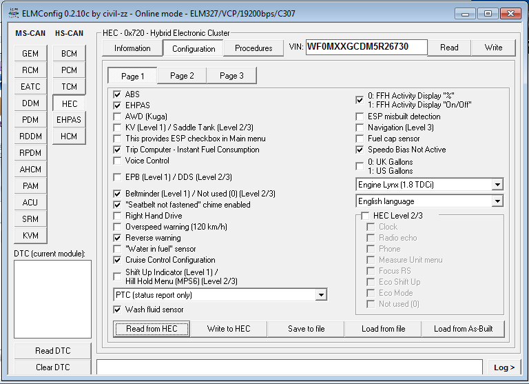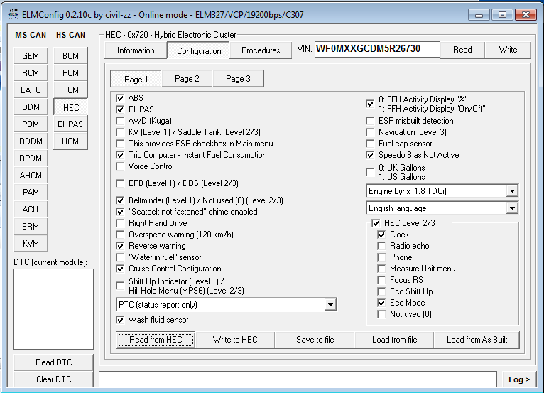 Připojil jsem ELMa ke starám, printscreenoval konfiguraci. Nasadil nové, naťukal konfiguraci i VIN. S největší pravděpodobností jsem to posral