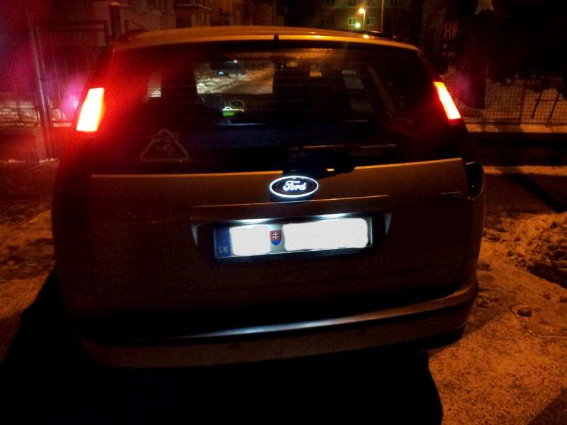 Ahoj, možná by to někoho mohlo zajímat :) Narazil jsem na diodovou podložku sloužící k podvícení zadního znaku na Mondeu a Focusu. Objednal jsem bílou a trochu zakutil. Nejprve je nutné sundat původní znak. Nejlépe je vzít vlasec, navázat ho třeba na dvě tužky kvůli úchopu a zasunout za znak. Znak samotný je stříbrný a drží na takovém černém plastu, který je maličko vidět, nutné je vlasec zasunout až ke kastli za ten černý plast. Pak je nutné celý znak vlascem odříznout - ze stran, zhora a zdola. Pak už by měl jít vytáhnout, v karoserii je alespoň u FF 2009 na třech plastových tyčkách (vidět je to na foto). Jakmile je znak dole je nutné očistit jej od původní lepící folie a odříznout z něj ty tyčky co jdou do kastle, nejlíp plátkem z pilky na železo (podložka v sobě nemá otvory). Pak očistit samotný znak, odmastit a nalepit na podložku ze strany, kde není kabel. Důležité je si dát pozor na vycentrování - při lepení je jen jedna šance, jakmile se znak jednou chytne, těžko se odlepuje. Podložku s nalepeným znakem si pak položte za zadní stěrač, odmontujte jedno ze světel nad SPZ a kabel ze znaku protáhněte jednou z děr po původním znaku a vytáhněte ho dírou pro osvětlení SPZ. Pak už stačí připojit na konektory ke světlu - měděný kablík patří na oranžový kabel vedoucí ke světlu. Při nastartování poznáte jestli jste to zapojili správně, jinak je třeba kabely prohodit. Pak už jen stačí přebytečný kabel zasunout dovnitř dveří, strhnout ochrannou folii a znak opatrně nalepit na předem odmaštěný povrch na původní místo.