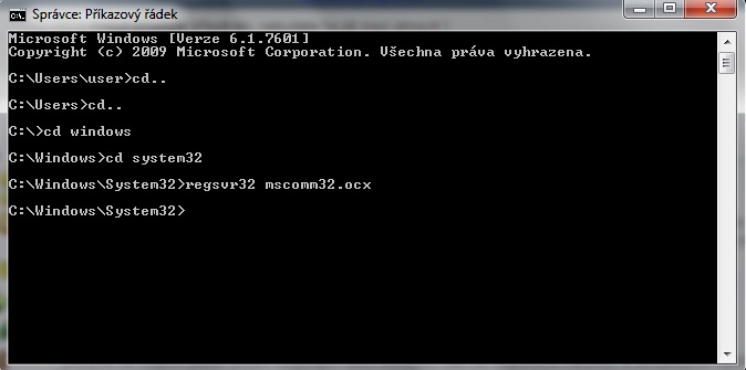 Ve W7 je nutné OCX soubor zaregistrovat: soubor mscomm32.ocx si dejte třeba do složky System32, potom spusťte příkazovej řádek a dostaňte se do složky system32, kde napiště viz. obrázek