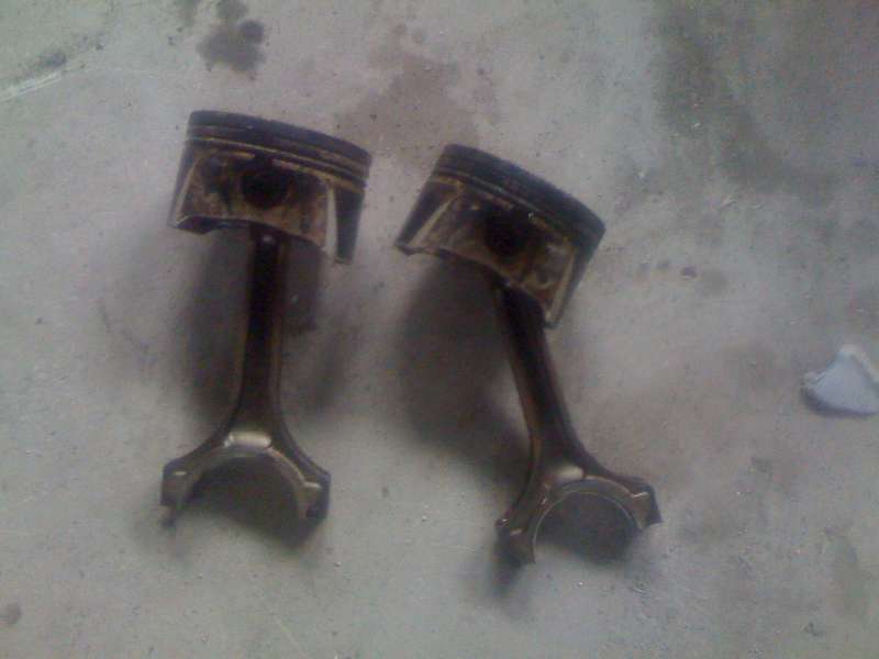 K věci. Blok z 1.6 má na výšku 39 cm, což je celkem málo. Napadlo mně udělat nožky z pístů s ojnicema. Zavařit čepy a nějak to nainplantovat zespoda.