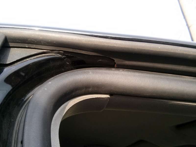 Asi si nasadzoval stresny nosic. Su tam dve tesnenia. Jedno vnutorne, druhe vonkajsie, na ktore dosada vonkajsia cast dveri. Ta vonkajsia sa pri montazi nosica musi odhrnut a vtedy vyskoci z tej skary. Naprava sa to tak, ze ju jednym prstom odhrnes cca 0.5-1cm a druhou rukou ju na opacnom konci dotlacis naspat. Pozri sa na to, pochopis