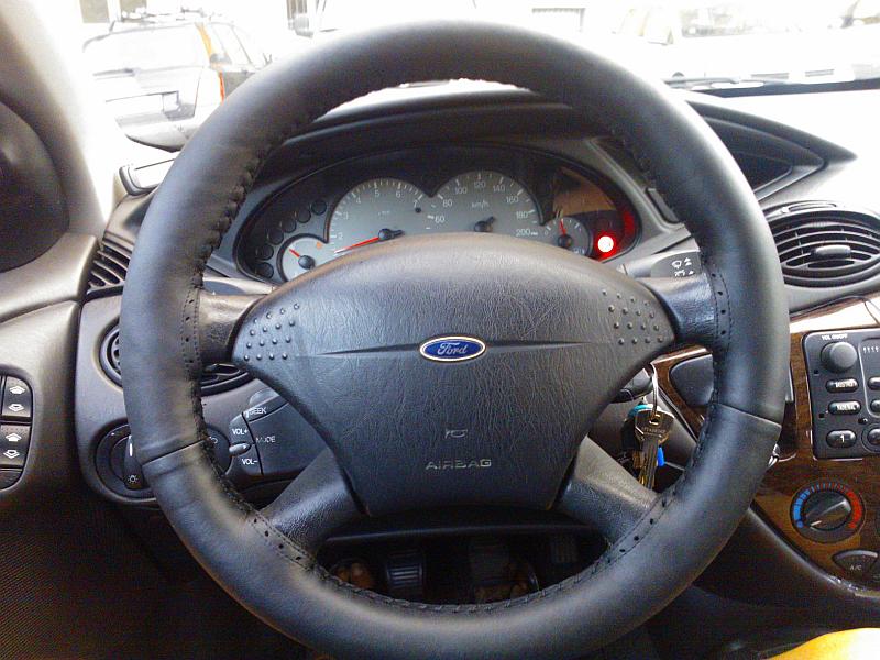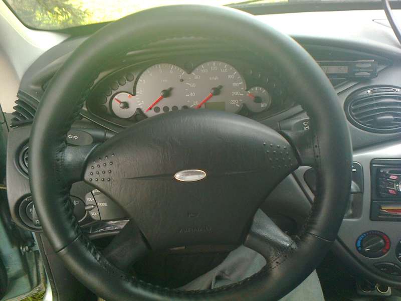 Nechal jsem si udělat volant u profi firmy v roce 2013. Volant je možná ještě o jeden dva mm užší. Stálo to asi 1400 Kč, strojní šití a jsem absolutně spokojený. Kdyby mi dcera trochu neokousala horní hranu, bude pořád jako nový.
