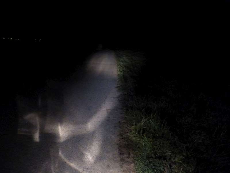 Jasne viditelne, ze svieti len pred autom, kde je prepaleny bod a vo vacsej vzdialenosti tma.