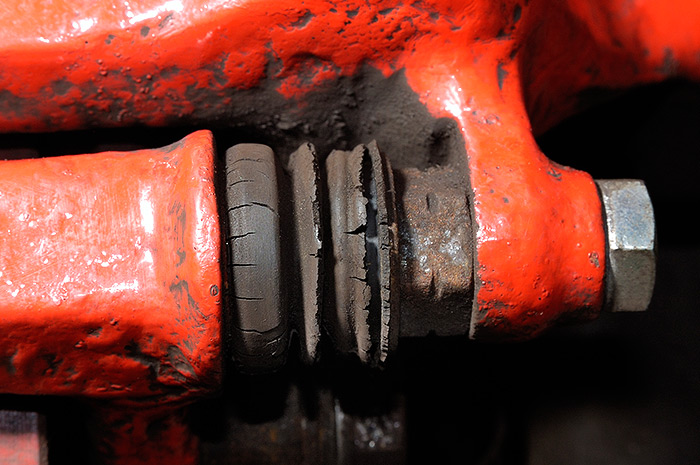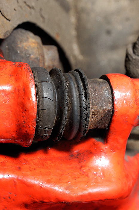 Na prachovkách byly již po měsíci viditelné prasklinky a po třech měsících praskly komplet. Našel jsem také popraskané těsnění pod pákami ruční brzdy. (viz foto)
