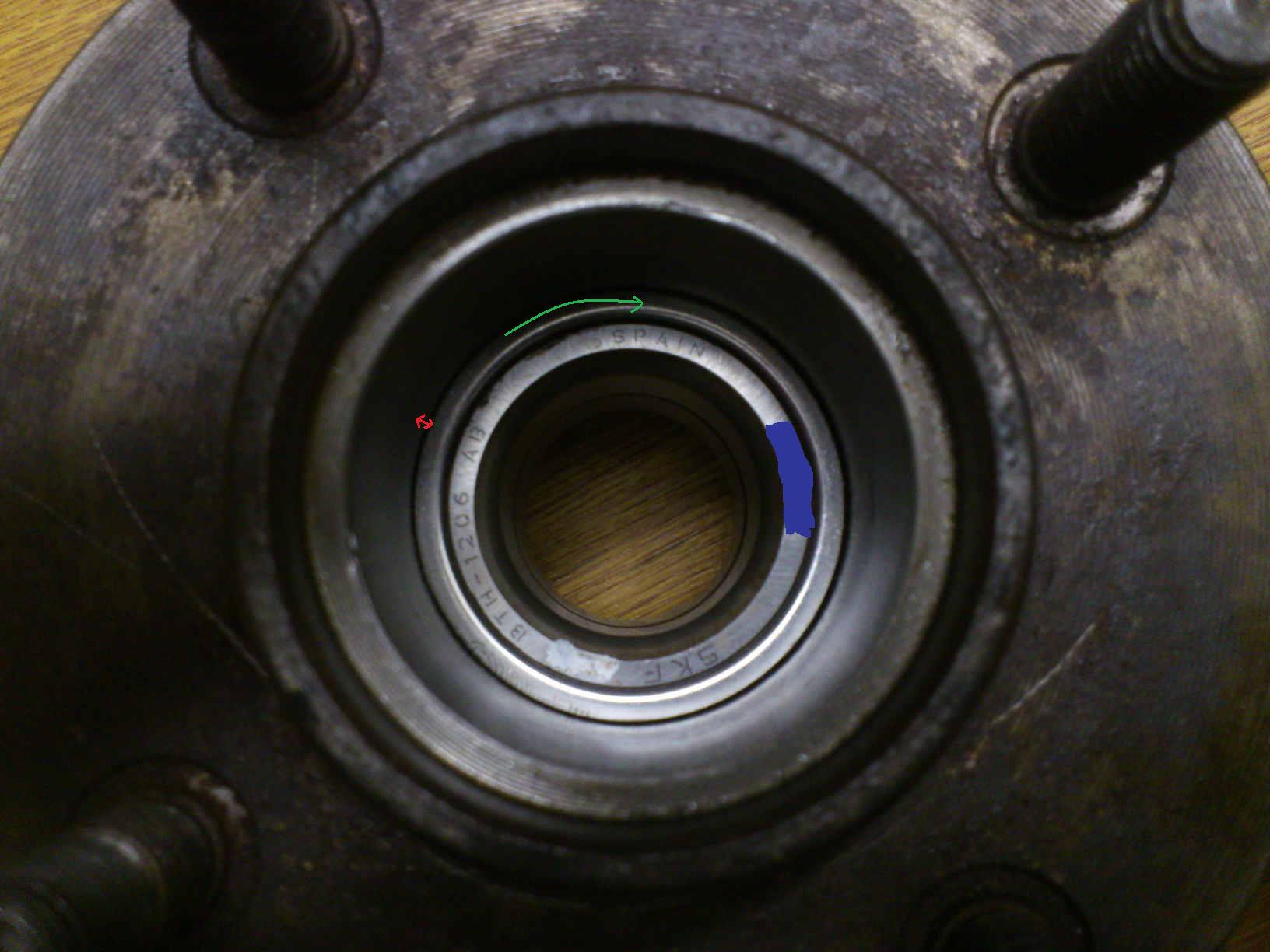 Řekl bych, že jim ta půlka vnitřní části ložiska při montáži vypadla a jak se ložisko snažili narvat do náboje, tak se ta krytka dostala mezi náboj a vnitřní kroužek.