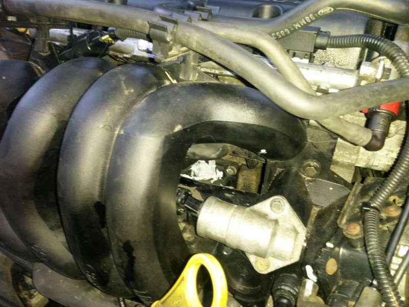 Vyzvednul jsem si auto ze servisu (výměna rozvodů a generálka hlavy) a doma po otevření víka při běžícím motoru zaregistroval syčení. Při bližší prohlídce jsem našel napojení jedné hadice zaprcané silikonem (viz. foto). Nevíte, zda-li je tam tato hadice pouze nasazená a dá se vyměnit? Nechci se hned pouštět do odstraňování silikonu. Do servisu si samozřejmě půjdu promluvit, ale chci vědět na čem jsem.