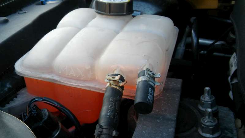 No a teraz ma zaujíma to že jak som vám vyfotil termostát a som označil ten odvzdušnovací ventil s oranžovou,tak vačšina auta myslím fordy maju tam pripojenu tu druhu hadicu z nádobky čo ja mám zaslepený.Ale asi to tak má byt od výrobi.Len som zvedavý čí ano.