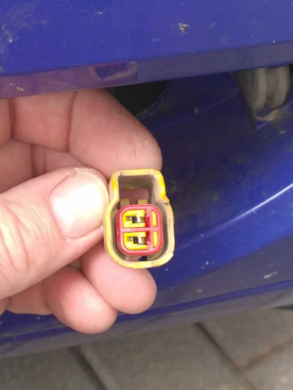 Jednoduchá porucha - nesvítí mlhovka. Kouknul jsem a příčina je zcela jasná - ulomený jeden z káblíků přímo na vstupu do kenektoru. Co s tím? Pokud by aspoň kousel lkoukal, není co řešit, ale takhle opravdu nevím.