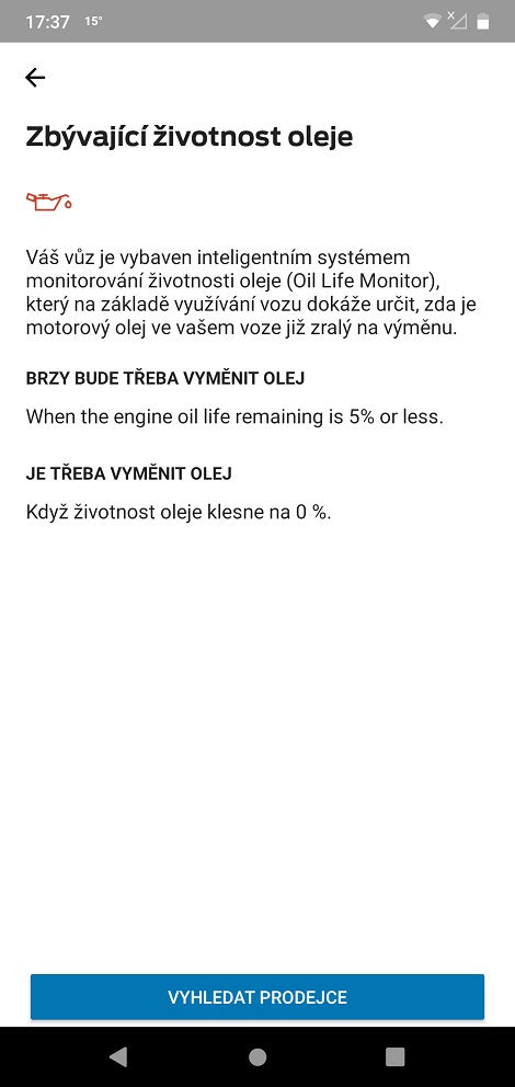 Jo, tak toho bych se taky obával, páč ja kupoval auto v r. 2017 a spousta věcí co byla slibována, nefunguje dodnes. Např. android auto u nás ofiko nejede, ale to samozřejmě neni vůbec vina Fordu.. Jinak přiložím screen z ford pass - ohledně IOLM.