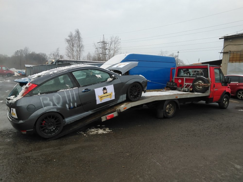 Pátek ráno, den před závodem. Z Ostravy kolem 9té hodiny vyráží rOmik s odtahovkou, která na zádech nese BO!!! My s bratrem a jeo spolužákem vyjíždíme po 12té hodině přes D1 na Prahu a dál pak do Mostu. Po cestě jsme potkali jednu posádku, která si na podvalu za autem vezla červený peugeot combi, který v příběhu BO!!! bude mít ještě jednu malou epizodu.