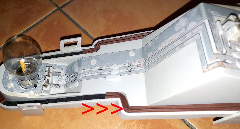 - lépe utěsnit tu gumu, např. opatlat její okraje silikonem (tj. opakovat při každé výměně žárovky?) nebo vyměnit za novou - viz. např. tady z materiálu karimatky: https://www.zonerama.com/Photo/4946698/169563572