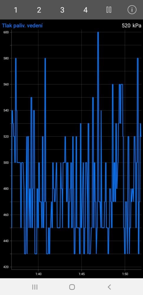 ps: prej ze mam zavzdusnenou palivovou soustavu a chce to oodvzdusnit vice ale prej to museji delat dva lide jeden toci a druhy povoluje vysokotlaky privod ke vstrikum.Jeste jsem zkousel vzit baterku z druheho auta a take nic.jeste me napadlo ze jsem cistil snimac tlakoveho ventilu ten co je na pavpukovy.Ped cistenim ukazoval hodnotu 230kpa a po vycisteni 650kpa.jen takovy poznatek ted mi to zas ukazuje nejakych 430kpa. ps v prilozenem screenu je videt tlak 0,6baru coz je asi malo, myslim ze by zam meli byt o 2bary vice (2,5B) a napeti ridici jednotk? jsou 2V neni to malo?