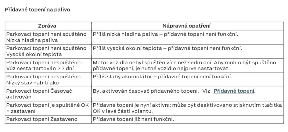 A co máš nebo nemáš? Chceš mít možnost nastavit čas topení v IPC? Jak Ti dálkáč zabliká, když se pokusíš spustit? Po neúspěšném startu se ukáže na IPC hláška, proč to nespustilo. To Ti ukazuje? Navíc nad 15°C nejde spustit (u nafty). U benzínu asi nad 5°C