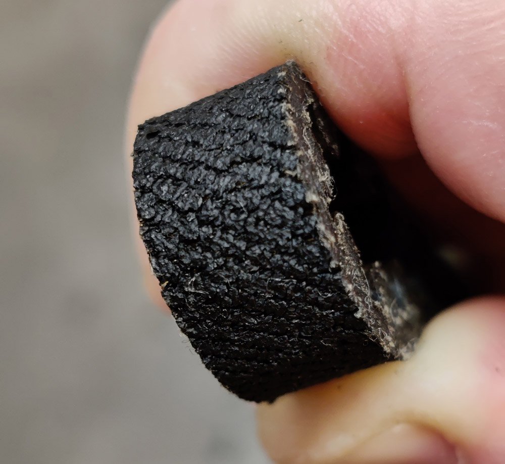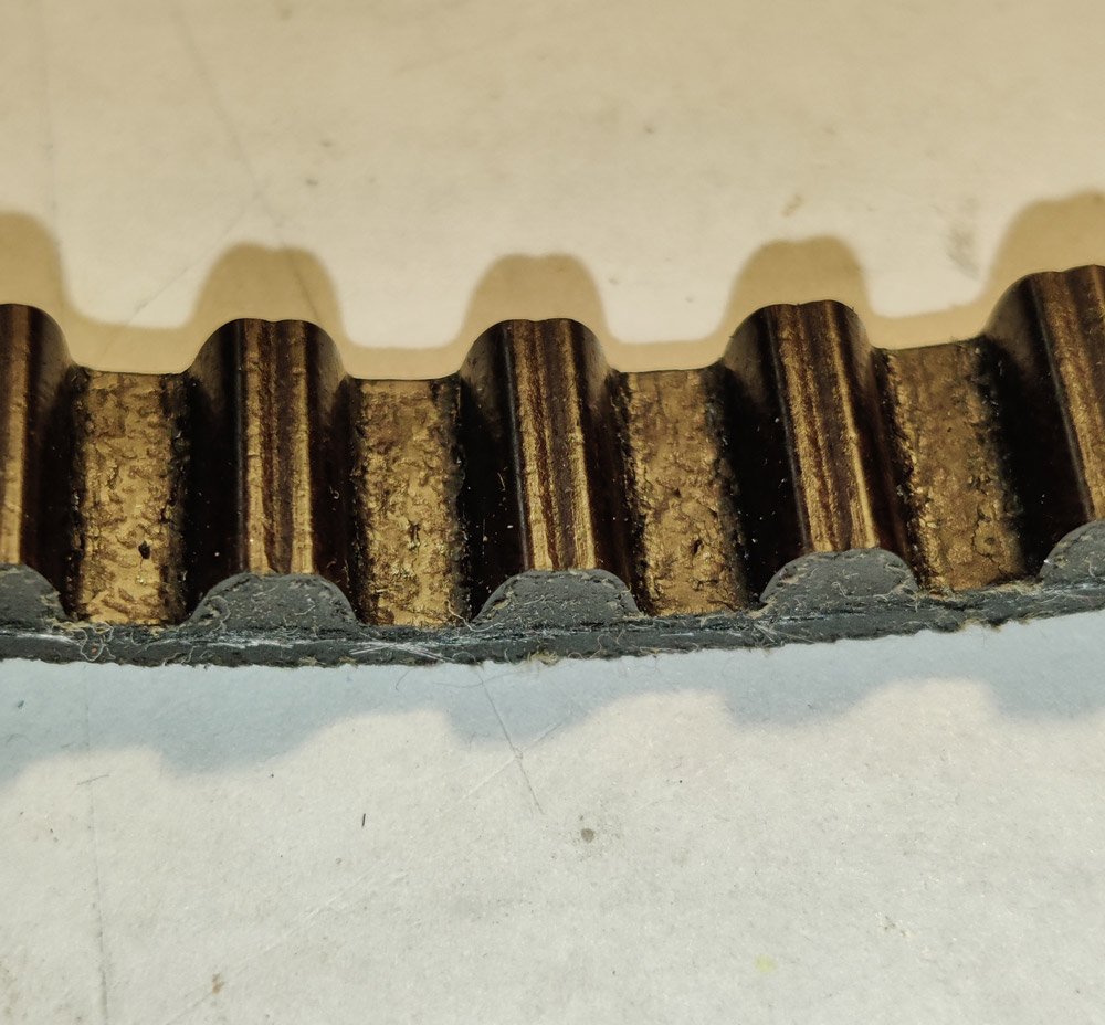 Starý rozvoďák už nemám, ale řemen na olejové čerpadlo jsem našel a důkladněji ho prozkoumal. A není v tak dobrém stavu jak jsem psal výše. Zuby jsou ok, ale když začnu řemen lámat, jsou v něm vidět praskliny a celkově je guma dosti ztvrdlá. A to má nejeto jenom 60 tis, stáří 6 let. Nějakých 240 tis. by určitě nevydržel. O rozvoďáku ani nemluvit, ten byl ještě v horším stavu co si vzpomínám.