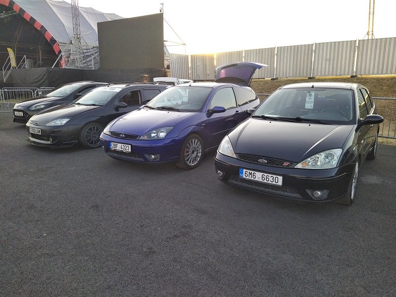 Od zaparkovaných aut, včetně našich vycházíme vpřed neznámému, nevídanému. Hned u mostu - např. Sierra ve verzi pickup, vedle ní limitovaná serie Sierra V8 původně pro africký trh...Jdeme dále a přecházíme most nad tratí, kde pod námi doslova prolétávají Fordy. Jdeme směrem k depům....staré Cortiny v naprosto ukázkovém stavu, mezi nimi i pár dochovaných originálních Lotus Cortina jak jinak, než na značkách. Následují Escorty MK1 a MK2, Capri s motorem YB Cosworth...a mezi těmito skvosty i červená kostička, která s námi jela jízdů na okruhu. Blíže k depům - naproti nim stojí zástup Focusů RS MK1. Byl pro nás takový svátek, když se v Ostravě vyskytlo celkem 8ks díky rOmikovému nápadu ke příležitosti výročí 20let od výroby. Tady to bylo jiné - jako u dealera Ford před 20ti lety. Zástup legendární předokolky o minimálně 50-ti kusech vedle sebe ve dvojřadu, který ukončovalo známé růžové eReSo. Za eReSy pokračoval zástup Focusů ST170. Byl jsem zvědavý, jestli dorazí i nějaké varianty kombi. Pro mě překvapení - že jich pár opravdu bylo a pro mě do té doby neviděné ST170 kombi ve stříbrné barvě.