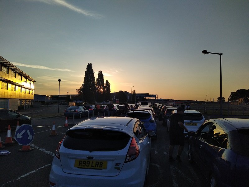 Už sobotní odpoledne podvečer to v podstatě začíná - na ulicích a silnicích ve všech směrech začíná Ford okupovat ve většině počtu dopravy. My se rozhodli, že ještě u jedné pumpy umyjeme auta, aby byla aspoň trochu čistá, za celou tu cestu z domu. Potkali jsme před sebou dvě auta. Červený Escort MK4 a Sierru Saphire. Vyskákali z toho, asi 4 barely rúzné chemie. Na první pohled auta přeleštěná jak blázen, ale majitelé se ohradili - "no, no, it´s dirty" :nixw: Po nás přijel borec v modré Fieste ST180. Jeho spolucestující mu auto celé umýval a já se s ním dal trochu do řeči. Hodně se divil, jaké je to u nás, že u nich můžou mít v autě pomalu jaderný reaktor a nikdo to neřeší a u nás nesmí být ani polorám...Dal nám nějaké tipy na nocleh, pár rad, popsal co nás zhruba asi čeká, protože jeho to byl 8-mý Ford Fair celkově. My našli na spánek nakonec místo před farmou cca 5km od Silverstonu. Tak jak se večer dobře pilo a mluvilo, ráno se trošku hůř vstávalo - respektive jen mýmu bráchovi, který jel ještě přes vjezd na okruh rozespalý ve spacáku na předním sedadle.