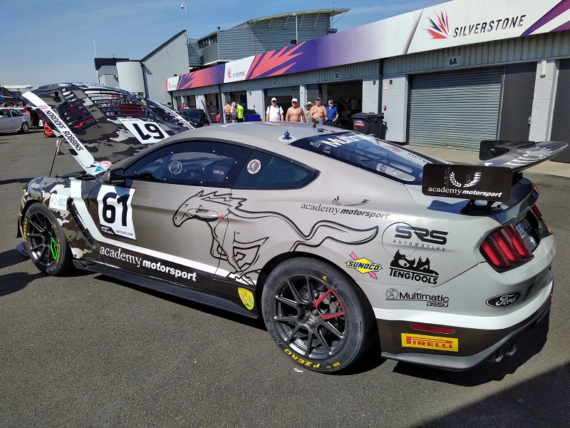Kousek od Focusu MK1 V8 stál Ford Mustang nýnější závodní skupiny GT4. Na první pohled strašně monstroózní auto, od pohledu těžké a vidlicová V8 pod kapotou. Říkali jsme si, jak to asi může jet. K tomu se ještě vrátím v návaznosti o něco později.