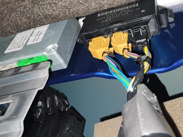 Jednotka je namontována v pravé kapse. Je dost nahoře tedy vypadá malá. Pro demontáž zmáčkout zámky (pacičky na konektorech) , pak zezada nahmatat ten čuplí a vysunout. Pak si vzít plech a šrouby také. Asi se zítra zase projedu opět pro ty šrouby.
