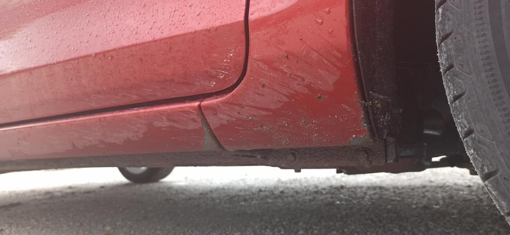Hlavně jsou i chycené začátky prahů - důsledek chybějících předních zástěrek.